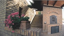 PAVIMENTAZIONE E MURETTO IN TUFO |